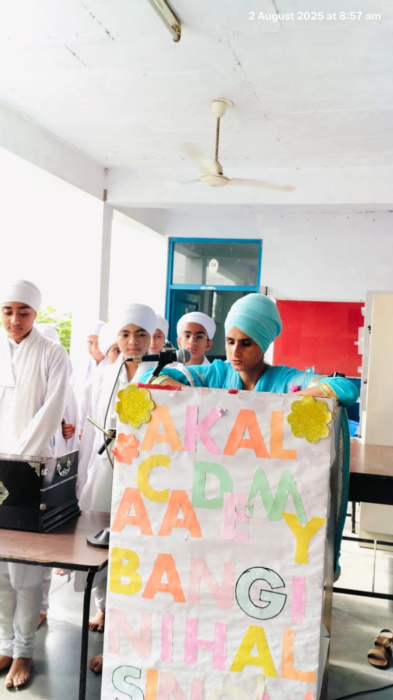 Akal Academy Bangi Nihal Singh held an assembly to pay tribute to the martyrdom of Shaheed Udhham Singh Ji. The students and staff came together to honor his sacrifice and bravery. Students and teachers delivered inspiring speeches about Shaheed Udhham Singh Ji’s life, highlighting his patriotism and courage. Additionally, students recited a poignant kavitshri (poem) in his honor, showcasing their creativity and respect for the martyr. Through this commemoration, the academy aimed to install values of patriotism, courage, and selflessness in its students.