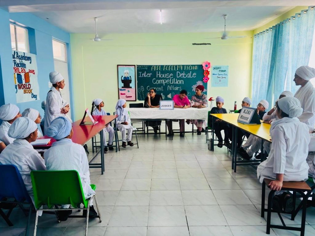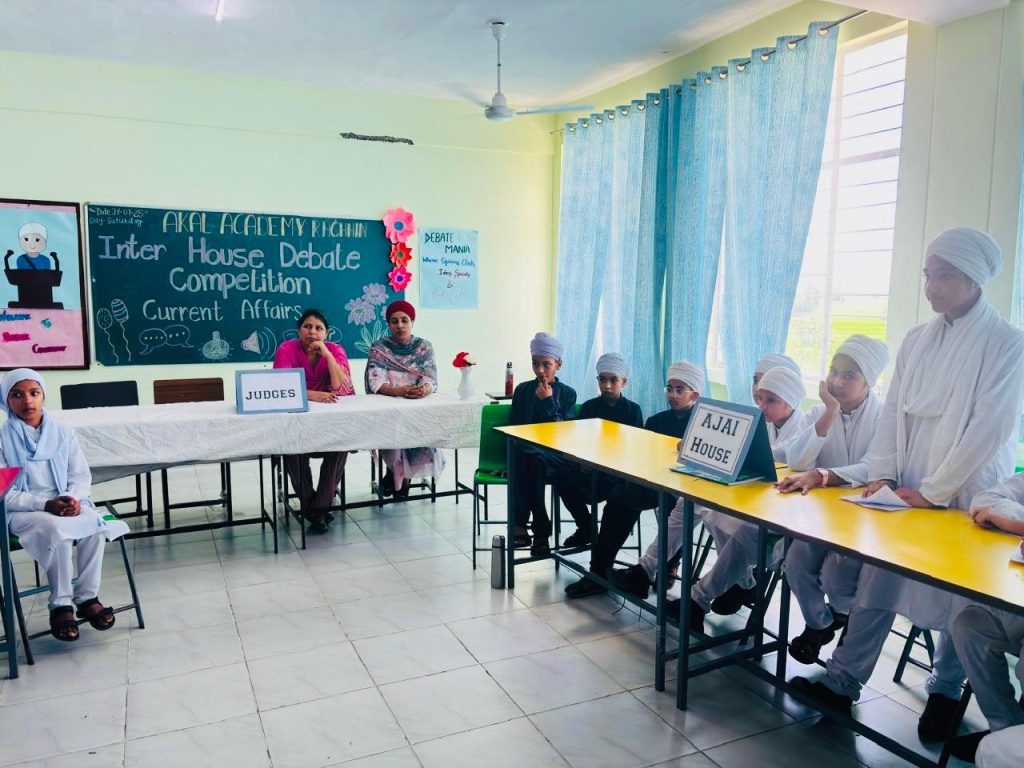 Students of Akal Academy Rachhin organized an Inter-House English Debate Competition with great enthusiasm and confidence. Each participant showcased remarkable oratory skills, presenting strong arguments and counterarguments with clarity and poise. The competition not only enhanced their public speaking abilities but also encouraged critical thinking and healthy competition.