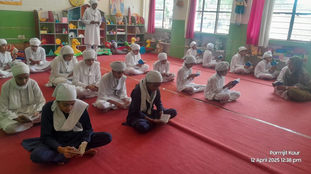 All Staff members and students recited Shri Sukhmani Sahib path by heart on the eve of Baisakhi and Khalsa Sirjna Divas. Every year on this special occasion teacher and students recited Shri Sukhmani Sahib. On this day after shabad kirtan there was Daster Bandi competition held. Students took part in this competition.