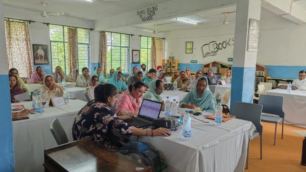 A one-day workshop was organized at Akal Academy Theh Kalandar, which is run under the guidelines of Kalgidhar Trust Baru Sahib, under the guidance of Respected Dr. Davinder Singh Ji (President) and Dr. Neelam Kaur Ji (Advisor Health and Education). Principals of 24 Akal Academies, Coordinators, Religious Education and Punjabi teachers as well as RO Department Jalandhar also participated in this workshop. During the workshop, a special discussion was held on promoting moral values and values along with modern education among children. Dr. Neelam Kaur Ji shared her thoughts on personality development among students during the meeting with the Principals. Dr. Davinder Singh Ji said in his address that in today’s time, it is most important that our young generation be connected with modern education, Bani and Bane. He motivated all the participants to follow in the footsteps of Dashmesh Pita and encouraged them to take inspiration from the life and ideology of Sant Atar Singh Ji, Sant Teja Singh Ji and Sant Baba Iqbal Singh. The seminar began with Shabad singing by the students of the Music Department. Akal Academy Principal Gurjit Kaur Sidhu welcomed the guests by saying ‘Ji Ayaan’. An exhibition was also organized by the Science and Math Department on this occasion. Addressing the teachers, Incharge of Gurmat Education Beant Kaur said that teachers should themselves become an example for the students. Principal Gurjit Kaur Sidhu thanked all the guests and said that Akal Academy will always be committed to the all-round development of the students and to promote a high-quality educational system under the guidelines of Theh Kalandar, Kalgidhar Trust Baru Sahib.